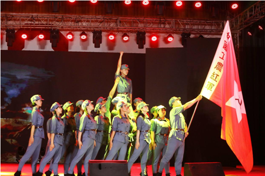 大會休會10分鐘后,一曲《紅旗頌》拉開了文藝匯演序幕。飄揚的紅旗蕩起火紅的海洋,帶人進入革命的世界,心情豪邁,催人奮進。緊接著,《我的祖國》、《十送紅軍》、《唱支山歌給黨聽》、《朗誦》、《打靶歸來》、《在希望的田野上》、《戲曲》、《祖國不會忘記》等節目一個比一個精彩,一曲比一曲高亢,歡快的鼓點、優美的舞姿將中華兒女團結之心、愛國之情、幸福之悅演繹得酣暢淋漓,現場氣氛熱烈而又溫馨。特別是情景劇《十送紅軍》,悠揚的嗩吶聲、優美的舞姿,展現了紅軍前仆后繼、披荊斬棘的頑強戰斗,深深表達了革命根據地人民與紅軍難舍難分的情感。《朗誦》節目中講述了黨的百年奮斗史,展示了黨的豐功偉績,謳歌了偉大新時代。一段段的深情回憶、一句句鏗鏘誓言,激發出拳拳愛黨心、濃濃愛國情。節目匯演中間,播放了《安陽中聯轉型升級宣傳片》、《企業文化宣傳片》,全體黨員聚精會神地觀看,暗淡的燈光下涌動著對企業最為強烈地情感,最為堅定的意志。