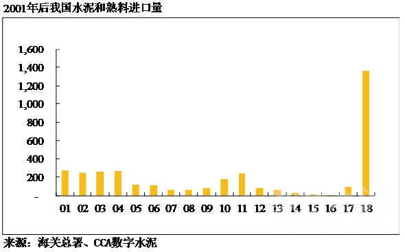 2017年以前,中國水泥年進口量最多不到300萬噸,2016年更是達到了歷史低谷的6.5萬噸。但隨著我國沿海地區熟料價格高企,2018年以水泥熟料為主要產品的進口量爆發性增長,僅當年的進口量就達到1363萬噸,比2005-2017年13年進口量的總和還多。