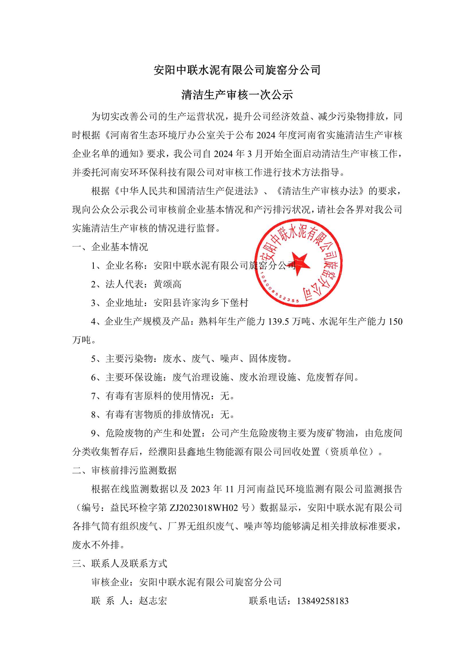 安陽中聯水泥有限公司旋窯分公司突發環境事件應急預案公示